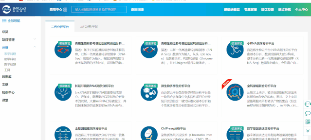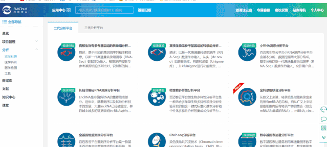 百邁客云包含農學和醫(yī)學兩大類分析平臺,醫(yī)學分析平臺主要針對人、鼠數(shù)據(jù)的分析,包含:轉錄組、非編碼RNA、單基因病外顯子、腫瘤外顯子、重測序等數(shù)據(jù)分析,以及全轉錄組聯(lián)合分析;農學分析平臺可以應用到更多的物種,涵蓋轉錄組、非編碼RNA、微生物、蛋白、代謝等數(shù)據(jù)的分析,以及全轉錄組聯(lián)合分析等。點擊左側導航分析->農學或者醫(yī)學打開分析平臺列表頁面,點擊選擇您想要使用的分析平臺,打開其詳細介紹頁面,該頁面可以看到該平臺的應用領域“平臺介紹“技術背景“案例“課堂“版本記錄,點擊打開軟件即可進入到參數(shù)頁面。
