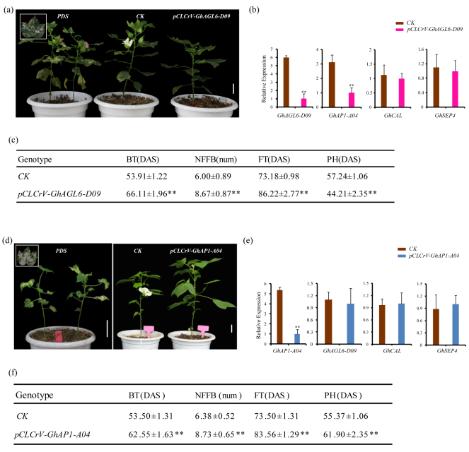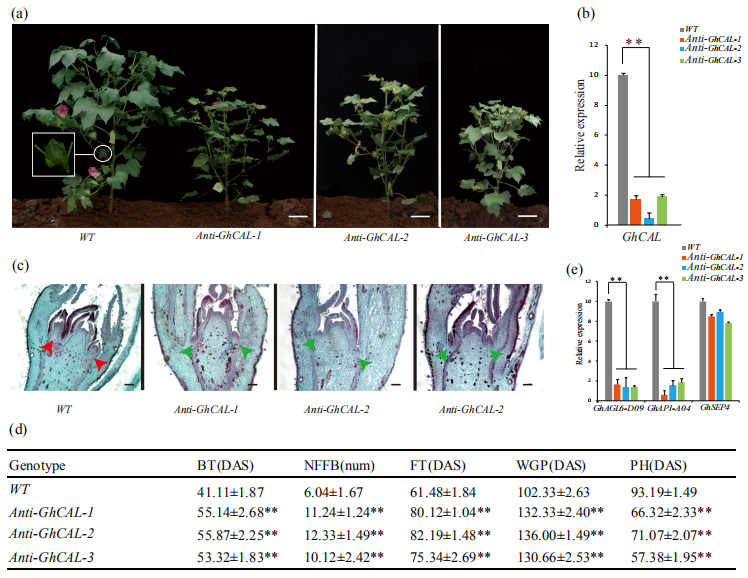 5、GhCAL在調節(jié)從營養(yǎng)生長到生殖生長的轉換的功能驗證