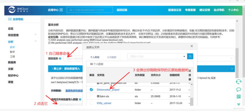 導入數(shù)據(jù)之后,可以根據(jù)自己的需要修改樣品ID,由于此處設置的ID會體現(xiàn)在分析報告和分析結果中,因此請慎重考慮后再設置,分析完成后不可再次修改。如果平臺上還沒有您自己的數(shù)據(jù),請參考數(shù)據(jù)上傳先將您的數(shù)據(jù)傳到云平臺上。