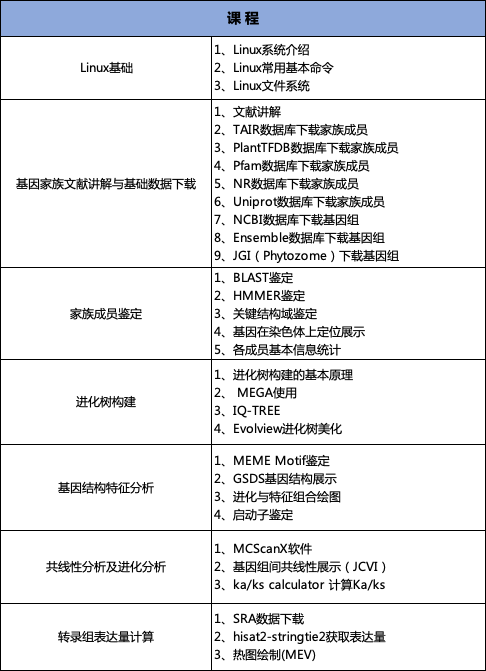 2、基因組類課程:比較基因組學+基因家族分析課程(可組合:零基礎R語言繪圖+生信入門+GWAS+遺傳進化+重測序分析課程)